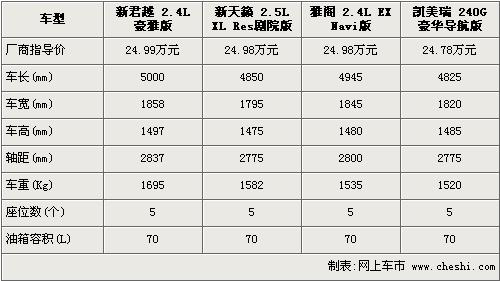 提到中級(jí)車市場(chǎng),人們便會(huì)很快的想到新雅閣、新凱美瑞和新天籟這三款日系車型,它們?cè)谥屑?jí)車市場(chǎng)里算是鼎鼎有名的“三位”了。隨著今年7月8日別克繼新君威后的又一力作新一代君越的正式上市,中級(jí)車市場(chǎng)迎來了又一款“重量級(jí)”車型。新君越的上市更加鞏固了別克在中級(jí)車市場(chǎng)的位置,并且給同級(jí)別的中級(jí)車帶來了更強(qiáng)的競爭力。既然有新車型加入了隊(duì)列,那么同級(jí)車之間價(jià)格和配置的“競爭戰(zhàn)”是必不可少的。下面我們就為您挑選了新君越2.4L豪雅型、新天籟2.5L XL RES劇院版、雅閣2.4L EX導(dǎo)航版和凱美瑞240G 豪華導(dǎo)航版四款價(jià)格相近的中級(jí)車作為比較,看看這四款熱門車?yán),哪款車型更適合將要購入中級(jí)車的您。