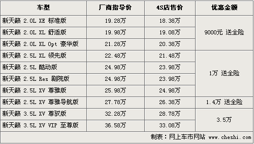 據(jù)4S店銷售人員介紹,目前消費者購買新天籟2.0和2.5排量車型分別贈送價值8000元左右的全車保險,除此之外,現(xiàn)車現(xiàn)金優(yōu)惠從9000元-3.5萬元不等。其中2.0排量現(xiàn)車優(yōu)惠9000元,優(yōu)惠后最低僅售18.38萬,2.5L低配版優(yōu)惠1萬,高端導航版優(yōu)惠1.4萬,3.5排量則最高達到了3.5萬現(xiàn)金優(yōu)惠。目前2.0L和2.5L排量車型有黑色、白色、紫色等現(xiàn)車供應,但數(shù)量有限,部分車型還需要預訂。