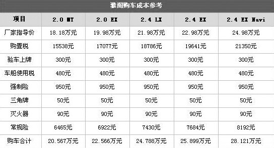 自從08年1月6日第八代雅閣在中國上市以來,憑借良好的外觀、優(yōu)秀的操控性能以及不錯的油耗,一直擁有不錯的銷量。在同級別車中,銷量名列前茅。從第七代雅閣曾經(jīng)創(chuàng)造的連續(xù)19個月的同級別車的銷量冠軍的記錄,以及目前熱銷的第八代雅閣,充分說明了消費者對雅閣的青睞程度。很多網(wǎng)友非常關(guān)注這款車在平時用車成本,以及油耗方面的問題,下面網(wǎng)易汽車編輯就為大家對這款扯得購車成本、保養(yǎng)費用和用車費用三方面做逐個分析。