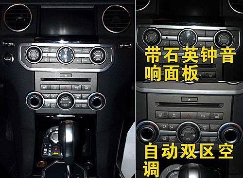 發(fā)現(xiàn)4既然是來自英國的品牌,雖為越野車但英倫的品味不能丟,眾多英國車所標配的石英表,它自然不會忽略,小的石英表被鑲嵌在音響面板中,整體美觀中不失高雅,當然雙區(qū)自動空調(diào)自然是標準配置。