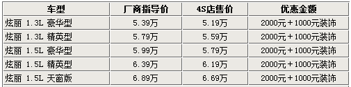 據(jù)4S店銷售人員介紹,長城炫麗雖然上市時間較長,但現(xiàn)車銷售狀況卻表現(xiàn)一般,所以為了盡快進(jìn)入暑期的促銷旺季才開始優(yōu)惠銷售。另外,4S店銷售人員也表示,現(xiàn)車的車型和顏色并不是很全,現(xiàn)在購買炫麗系列車型,消費者不僅可享受現(xiàn)金優(yōu)惠,還可以贈送地膠、腳墊、貼膜等價值千元的裝飾,但不能折現(xiàn)。