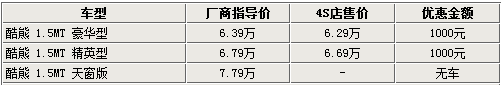 據(jù)長城汽車4S店銷售人員介紹,長城酷熊豪華型和精英型都已經(jīng)有大部分顏色的現(xiàn)車到店,消費(fèi)者可以到店提現(xiàn)車。但酷熊天窗版由于廠家并沒有投產(chǎn),導(dǎo)致沒有現(xiàn)車,而且也不能接受預(yù)訂。另外,銷售人員表示,目前購買酷熊車型可給出千元的現(xiàn)金優(yōu)惠,對(duì)于消費(fèi)者而言無疑是一個(gè)好消息。