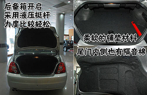 名爵MG 7L的后備箱開啟采用液壓挺桿,開啟的力度非常輕松,后備箱內(nèi)部采用柔軟的鋪墊材料,內(nèi)部空間也非常大。另外,尾門內(nèi)側(cè)也有隔音棉,還有防掛蹭的效果。