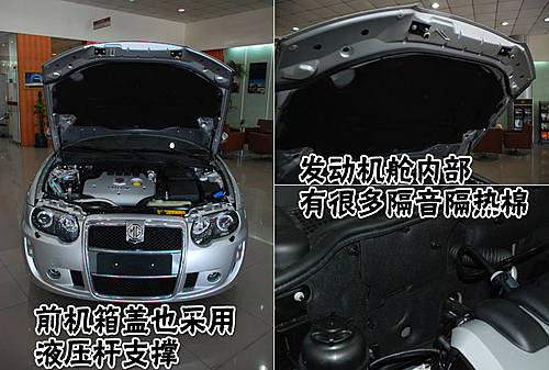名爵MG 7L的前機(jī)箱蓋也采用了液壓挺桿支撐,開啟絲毫不費(fèi)力氣,發(fā)動(dòng)機(jī)艙內(nèi)部布局非常整潔,而且機(jī)艙內(nèi)部和機(jī)箱蓋內(nèi)側(cè)有很多隔音隔熱材料。