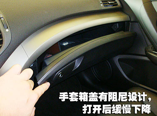 思鉑睿的手套箱為有阻尼設(shè)計(jì),在打開(kāi)手套箱后不會(huì)因重力而自由下落,手套箱內(nèi)部空間較大,分層設(shè)計(jì)可以方便乘客查找物品。