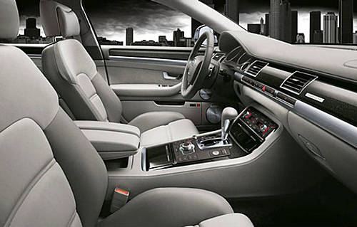 外觀上,如果不仔細(xì)觀察,的確很難辨認(rèn)它就是S8,因為除了紅底的“S”標(biāo)識之外,大尺寸輪轂、低車身與“小”包圍套件會讓你誤以為這是A8的改裝版。而事實上,為了提升S8的操控與整體協(xié)調(diào)性,該車并沒有采用國內(nèi)所發(fā)售的A8L長軸距版設(shè)計,而縮短了130mm(即2944mm)的軸距屬于標(biāo)準(zhǔn)版(短軸距)A8身材。