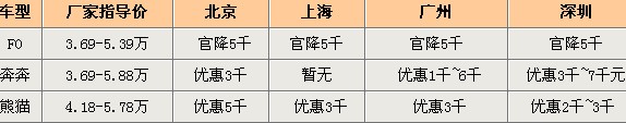 主要競爭車型:比亞迪F0、長安奔奔、吉利熊貓