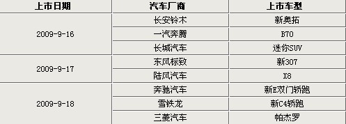 在“金九銀十”的銷售旺季中,許多汽車廠商都選擇在這個(gè)時(shí)候推出自己的新車。下周從16號-18號就有8款新車將集中上市,它們分別為新奧拓、奔騰2010款B70、長城迷你SUV、標(biāo)致新307、陸風(fēng)X8、奔馳E雙門轎跑、雪鐵龍C4轎跑車和三菱新帕杰羅,其中自主品牌車型占了主要部分。汽車廠商選擇在這個(gè)時(shí)期集中推出新車,不僅可以在“金九銀十”的銷售旺季提升銷量,而且也為消費(fèi)者提供更多的車型選擇。