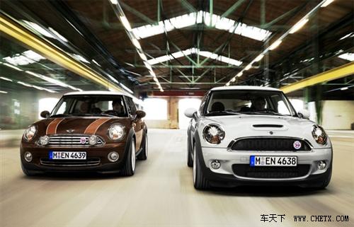 亮點:巧克力褐色的外觀噴涂、17英寸白色輪轂、鋼琴黑的裝飾面板、帶USB和iPod插口的HarmanCardon音響系統(tǒng)、鍍鉻金屬格柵及50字樣的數(shù)字標(biāo)識共同勾勒出了MINI50周年紀(jì)念版“迷你”的誘人外觀。
