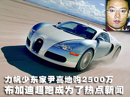 力帆集團(tuán)是中國(guó)最大的民營(yíng)企業(yè)之一,同時(shí)也是國(guó)內(nèi)為數(shù)不多的自主汽車品牌生產(chǎn)廠家。主其掌門人尹明善為人低調(diào),而近日其長(zhǎng)子尹喜地購(gòu)買價(jià)值2500萬(wàn)超級(jí)跑車布加迪的新聞讓力帆以及尹明善成為了各方關(guān)注的焦點(diǎn)人物。