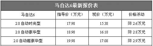 馬自達(dá)6自動(dòng)擋僅售15.38萬(wàn)