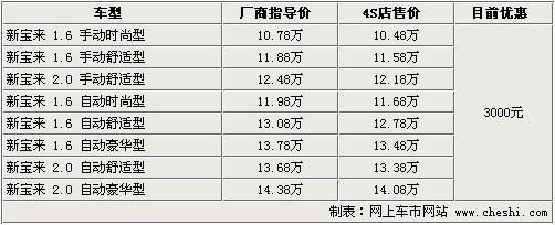 據(jù)4S店銷售人員介紹:目前大眾新寶來全系可優(yōu)惠3000元。目前新寶來全系現(xiàn)車較充足,顏色也比較齊全。如需預(yù)定車輛需等待2周至一個月時間,訂車周期較短,如著急用車的朋友請安排好用車時間。車價方面,新寶來在優(yōu)惠3000外,個別經(jīng)銷商還可送一些簡單裝飾,主要是腳墊等。