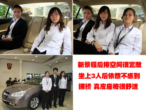 我們同樣又選擇了3名身高為165cm-170cm的美女,分別坐在新款景程的后排,來感受后排橫向空間的表現(xiàn)?此麄兊男θ菥涂芍篮笈趴臻g還是很令他們滿意的,的確表現(xiàn)也是如此。新款景程1807mm的車寬保證了車內橫向空間,于“標準身材”的它不謀而合。