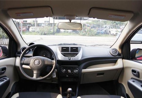 新奧拓的內(nèi)飾部分由淺米色和灰色兩種顏色拼接而成,雙色座椅、黑色真皮方向盤都能體現(xiàn)出一股時尚運動感。中控臺是塑料材質(zhì)的,感覺很廉價,但做工卻非常精細(xì)。