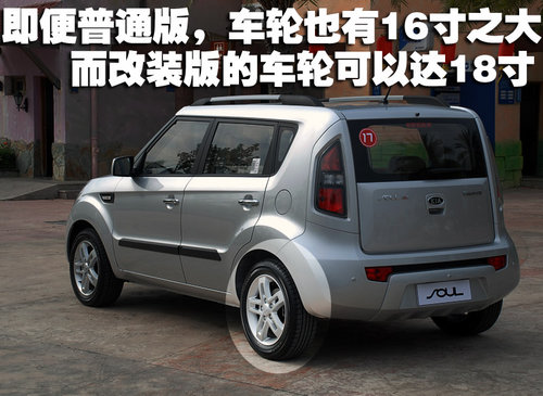 您是否看到過(guò)任何一款A(yù)0級(jí)的小車(chē)使用到了16寸的輪胎輪轂?答案當(dāng)然是沒(méi)有的,目前大部分同級(jí)別同價(jià)位車(chē)型最多也就是使用到了15寸而大部分還是停留在14寸而已。東風(fēng)悅達(dá)起亞SOUL的大尺寸輪胎輪轂個(gè)性鮮明,提升了整車(chē)的檔次感,也讓這款車(chē)型更加具備了一款CROSS OVER車(chē)型的感覺(jué)。