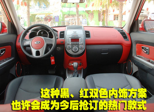 在方向盤也就是駕駛者的周圍分布著很多按鈕,不過別擔心,再生疏的駕駛者也不會因為這些按鈕或是功能而手忙腳亂,因為設計師早已經(jīng)為您的日常使用考慮的很周到了。位于儀表臺左側的三炮筒式儀表盤設計還算時尚,但是儀表盤的功能并沒有太多新鮮元素的注入,這一點也是因為成本的考慮而不得不落入俗套。中控臺左側下方是控制大燈高度的調節(jié)按鈕,右側的控制鈕是SOUL的最大特點,即控制前車門揚聲器發(fā)光的開關,它可以跟隨音樂節(jié)奏變換紅色燈光的閃爍,如同將迪廳的燈光帶入了車內。
