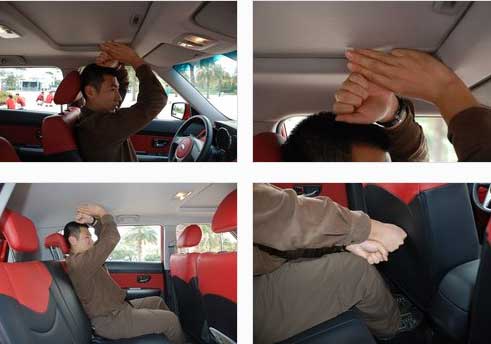 一臺不足4.1米軸距2.55米的小車內(nèi)部空間如何?上面既是答案。模特身高1.75米左右,在他與駕駛席正常的駕駛坐姿下,后排空間同樣可以坐下身高在1.75米左右的成員,而且空間仍然有一拳以上,前后排頭部的空間也因為較高的車頂設(shè)計而得到擴(kuò)大,完全不會感覺到乘坐不適。