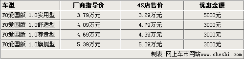 比亞迪F0目前在4S店的銷售價(jià)格比上周有所提高,其中實(shí)用型可以優(yōu)惠5000元,而其他三款車型都可以優(yōu)惠3000元。目前比亞迪F0實(shí)用型和舒適型現(xiàn)車比較齊全,尊貴型和旗艦型有部分顏色需要預(yù)訂。為了慶祝比亞迪F0上市一周年,首次嘗試了拍賣銷售活動(dòng),消費(fèi)者可以在現(xiàn)場通過競拍,以最優(yōu)惠的價(jià)格購買比亞迪F0。據(jù)了解,比亞迪F0拍賣活動(dòng)有很多成交價(jià)格都低于廠商指導(dǎo)價(jià)7000-8000元,比目前市場最低價(jià)格也低2000-5000元左右。
