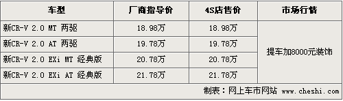 新CR-V全系7款車型有四款2.0排量車型。據(jù)東風本田北京地區(qū)4S店銷售人員介紹,目前CR-V加價繼續(xù)降低,但現(xiàn)在提現(xiàn)車還需加裝8千元的裝飾,裝飾項目包括了腳墊、尾翼、行李架、踏板等。消費者可根據(jù)需求選購,但是消費金額必須達到8千元。目前有黑色、銀色現(xiàn)車供應,白色車型比較緊張,需要預訂,訂金為2萬元,最快年底前可以提到車。北京地區(qū)各4S店由于訂單不同,各店銷售的現(xiàn)車顏色有所不同。