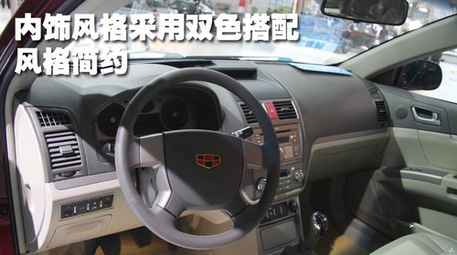 帝豪EC718-RV的方向盤采用皮革包裹,看上去顯得更有檔次,但這款車的方向盤上并沒有設(shè)計(jì)多功能控制按鈕,這一點(diǎn)比較可惜。方向盤左右兩側(cè)依然是傳統(tǒng)的大燈、轉(zhuǎn)向燈、雨刷器的控制桿。
