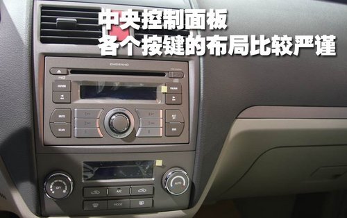 帝豪EC718-RV的中央控制面板的整體做工與以往車型相比,都有很大提升。從圖中可以看到,這款車配備了DVD音響、大尺寸液晶顯示屏和自動(dòng)恒溫空調(diào),舒適性、功能性配置都非常齊全。