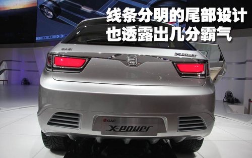 從尾部看上去,廣汽X-power概念SUV的線條非常分明,但由于尾燈的配合,顯得非常霸氣。這款SUV的尾燈采用紅色的設計,四周配備了鍍鉻裝飾條,而且尾部還設計了擾流唇和造型獨特的排氣口。