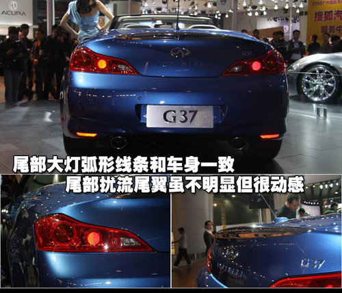 作為英菲尼迪G系家族新成員的G37敞篷車,外觀上秉承了英菲尼迪一貫的設(shè)計風(fēng)格。車身保留了原車流暢的線條,L形的前大燈顯得相當(dāng)銳利。車頂弧線以及那條強勁有力的腰線都增加了整體的運動感。