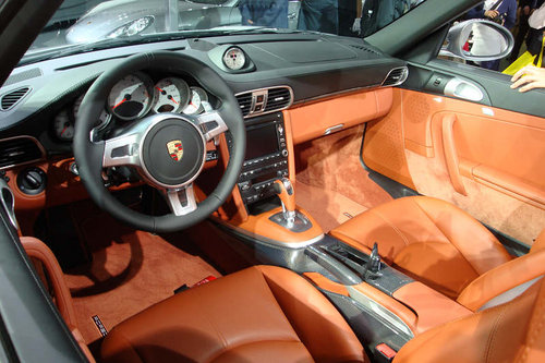 亞洲首發(fā)的保時捷911 Turbo Cabriolet成為展臺上最耀眼的明星。這款車型繼承了傳奇跑車系列所具備的非凡性能和精巧設計。這款第七代911 Turbo的核心亮點是其排量為3.8升、最大輸出功率達500 bhp的全新動力單元。在保時捷911 Turbo 35年的輝煌歷史當中,這也是第一款全新搭載了直接燃油噴射以及帶有可變幾何渦輪保時捷專用渦輪增壓器的發(fā)動機。另外,全新六缸雙渦輪增壓水平對置發(fā)動機也是第一次與七速保時捷雙離合器變速箱(PDK)配合使用。