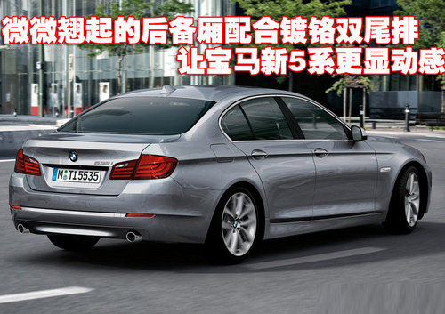 寶馬新5系尾燈雖然傳承經(jīng)典的“L”造型設(shè)計(jì),但轉(zhuǎn)向燈卻同樣采用了LED元素,彰顯大氣的同時(shí)又不失前衛(wèi)與時(shí)尚。此外,微微翹起的后備廂配合鍍鉻雙尾排設(shè)計(jì),讓寶馬新5系更顯動(dòng)感。