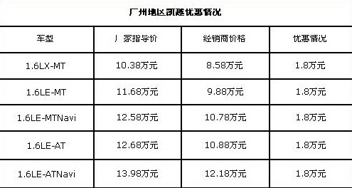 在10萬元級(jí)轎車群里,別克凱越有著比較不錯(cuò)的口碑,這次廣州經(jīng)銷商再次讓利1.8萬元。