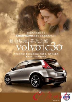 毫無(wú)疑問,這是最新出爐的汽車與電影組合。在這部小投入?yún)s大產(chǎn)出的電影中,VOLVO C30時(shí)尚、精致的造型和男女主角年輕俊美的外形搭配相得益彰,再加上雨意蒙蒙的畫面,讓人體驗(yàn)到完美的青春偶像作品應(yīng)該如何書寫。在這部影片中,最迷人的地方不是吸血鬼的神秘世界,也不是結(jié)尾時(shí)那場(chǎng)驚心動(dòng)魄的吸血鬼大戰(zhàn),而是看著神秘而迷人的男主人公愛德華開著精靈般的沃爾沃C30在雨霧中大秀車技。