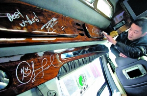 “小皇帝”詹姆斯、姚明隊友“麥蒂”、“大鯊魚”奧尼爾、“蜂王”保羅、“小黑豆”布魯克斯、法國足球巨星亨利、“香港天王”劉德華……司機白先生駕駛著一輛美國進口道奇公羊商務(wù)車,每天他都會擦拭著車內(nèi)這些明星們的簽名,這輛車也成了名副其實的“明星專車”。