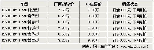 吉利帝豪經(jīng)銷處工作人員表示,現(xiàn)在店內的帝豪EC718-RV新車不全,但是很快將充足貨源,屆時將可滿足消費者的購車需要。現(xiàn)階段各家店內的EC718-RV及EC718車型均維持廠商指導價,暫時沒有任何現(xiàn)金優(yōu)惠。消費者購車需要提前預訂,訂金為3000元并需要等待一個月的時間。