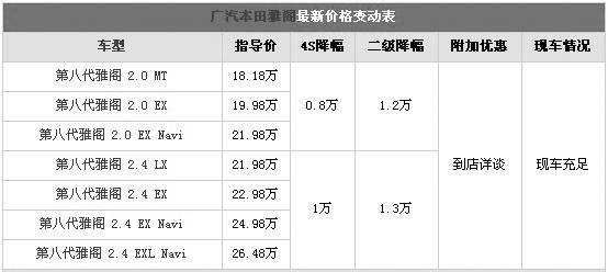 日前車天下汽車網(wǎng)記者從廣本4S店了解到,雅閣系列的車型優(yōu)惠幅度在8000-1萬元之間,不過在二級市場上,2.0L優(yōu)惠1.2萬,2.4L最高優(yōu)惠已經(jīng)達(dá)到了1.3萬,其中2.0L手動基本型最低僅為16.98萬,關(guān)注該車的消費(fèi)者可咨詢該經(jīng)銷商。