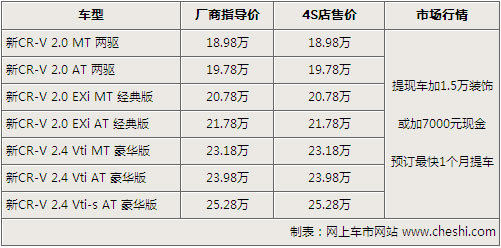筆者從經(jīng)銷店了解,目前CR-V仍需要加價(jià)購(gòu)車,提現(xiàn)車需要加7000元現(xiàn)金或者加裝1.5萬元的裝飾,裝飾項(xiàng)目包括了腳墊、尾翼、行李架、踏板等。消費(fèi)者可根據(jù)需求選購(gòu),目前2.0和2.4自動(dòng)檔有黑色、銀色現(xiàn)車供應(yīng),但顏色不齊全,訂車的話訂金為1-2萬元,最快1個(gè)月可以提到車。