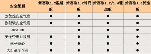 舒適配置是拉開車型價格的主要措施,這一點是很多車型通常的做法,新賽歐也不例外。不過,其1.2L和1.4L車型在基礎(chǔ)舒適配置上面還是比較平衡,中控鎖,發(fā)動機電子防盜,安全帶未系提醒,前排電動車窗,后視鏡電動調(diào)節(jié)都是標(biāo)配。