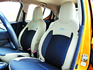 新奧拓采用了全新的中控臺(tái)設(shè)計(jì)元素,雙色內(nèi)飾使整個(gè)內(nèi)部空間層次分明。儀表盤的樣式很別致,在傳統(tǒng)的儀表盤上只有一個(gè)大大的圓形速度表盤,轉(zhuǎn)速表被單獨(dú)“提”了出來(lái),布置在儀表臺(tái)的左上方。儀表臺(tái)、前門板以及座椅都體現(xiàn)了雙色風(fēng)格,加上濃郁的設(shè)計(jì)元素,整個(gè)內(nèi)飾空間給人一種清新明快的感覺(jué)。運(yùn)用三種不同面料縫制的座椅頗具運(yùn)動(dòng)感,造型設(shè)計(jì)比較符合人體工程學(xué),頭枕和椅背采用一體式設(shè)計(jì),能貼合乘坐者的頭、背及腰部曲線以提供良好的駕乘感受。