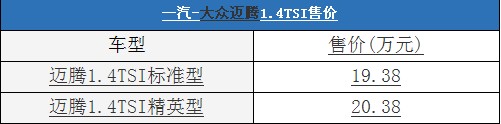 售19.38-20.38萬(wàn) 一汽大眾邁騰1.4TSI上市