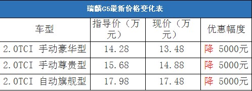 瑞麒G5:自主中型車新標桿,上市即降5000元