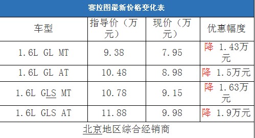 賽拉圖1.6GLS MT車型與1.6GL MT車型在配置方面增加了遙控鑰匙、電動(dòng)天窗、倒車?yán)走_(dá)、多功能顯示屏、真皮座椅、后視鏡加熱等,而1.4萬元的差價(jià)不如消費(fèi)者自行選裝這些配置合適。1.6GL MT車型與1.6 GL AT車型在指導(dǎo)價(jià)上相差1.1萬元,除了變速箱有所區(qū)別其他配置完全相同,而對(duì)于該車并不很先進(jìn)的4速自動(dòng)變速箱而言這樣的差價(jià)沒有太大優(yōu)勢(shì)。由以上兩點(diǎn)可以看出,消費(fèi)者如果想要購買賽拉圖,那么最低配的1.6L GL MT車型顯然是性價(jià)比最高的選擇。