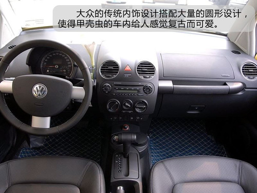 甲殼蟲采用了2門4座的設計,座椅偏硬,對側向的支撐感覺不錯。前排駕乘人員要獲得一個寬敞舒適的空間并不困難,通過座椅就能實現(xiàn)。對于后排的乘客來說腿部空間尚可,而頭部空間就顯得比較局促了,這是由于車身后部近乎圓形的曲線所造成的。