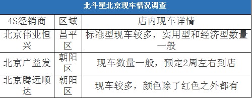 北斗星——現(xiàn)車數(shù)量一般,部分車型需預(yù)定