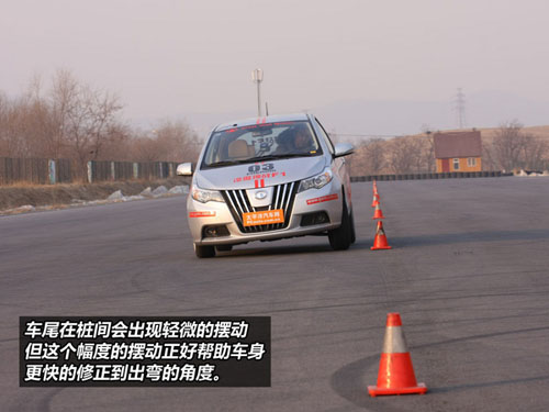 穿樁測試環(huán)節(jié),凌傲的轉(zhuǎn)向非常準確,四輪四角的設計讓它在樁間顯得異常靈活。由于這款車 不帶ESP功能,所以車尾在樁間會出現(xiàn)輕微的擺動,但這個幅度的擺動正好幫助車身更快的修正到出彎的角度?梢哉f,凌傲在裝桶間具有較高的駕駛樂趣。