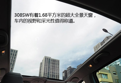 標(biāo)致308SW作為一款進(jìn)口小眾車(chē)型,可能并沒(méi)有太多人熟悉。作為一款休旅款車(chē)型,308SW有著1.68平方米的超大全景天窗。說(shuō)是天窗或許不夠形象,說(shuō)它是玻璃車(chē)頂則很貼切。這個(gè)覆蓋了幾乎三分之二車(chē)頂?shù)奶齑半m不能開(kāi)啟,但加上前風(fēng)擋玻璃和寬大的側(cè)窗及尾窗,占到了車(chē)身總面積的1/3,車(chē)內(nèi)的視野和采光性值得稱道。