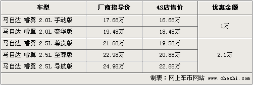 一汽馬自達(dá)睿翼 最高優(yōu)惠2.1萬(wàn)