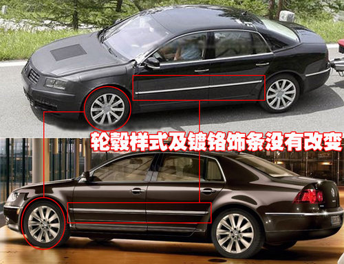 大眾新輝騰側(cè)面線條與在售車型保持一致,貫穿的鍍鉻飾條設(shè)計依然出現(xiàn)在大眾新輝騰的車身兩側(cè)。除此之外,10輻合金大尺寸輪轂依然沒有改變。