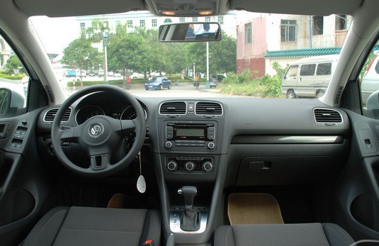 高爾夫的內(nèi)飾是經(jīng)典的雙色調(diào)配色,上面是耐臟的黑色,下面是舒適的米色。中控臺(tái)整體設(shè)計(jì)穩(wěn)重,自上而下分布著風(fēng)口、音響和空調(diào)功能區(qū)域,便于新車主習(xí)慣。當(dāng)然,少數(shù)幾處用上了金屬包邊,則能提升車廂質(zhì)感和檔次,也顯得更為精致。儀表盤(pán)是最經(jīng)典不過(guò)的雙環(huán)設(shè)計(jì),中間是行車信息顯示。機(jī)械風(fēng)格強(qiáng)烈,德國(guó)的機(jī)械設(shè)計(jì)合理性還需猜疑?做工方面,大眾一向是交足功課的廠家,即便是旗下最低端的POLO車型也不會(huì)讓人失望,何況這是重拳打造的高爾夫!當(dāng)然,質(zhì)感是一回事,高檔感又是另一回事。