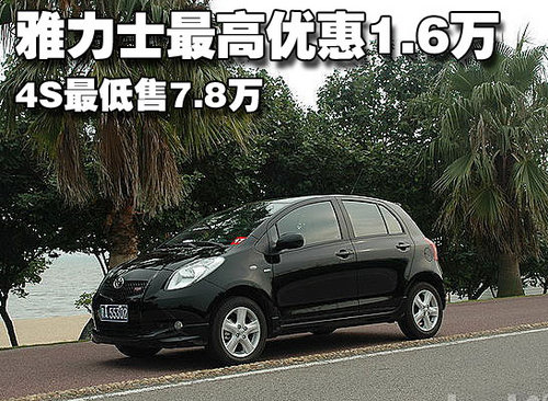 據(jù)廣汽豐田4S店銷售人員介紹,現(xiàn)在購買雅力士車型最高優(yōu)惠現(xiàn)金1.5萬元。低配車型優(yōu)惠1.3萬元,目前店內(nèi)有至尊版現(xiàn)車供應(yīng),顏色以黑色、灰色為主,其它車型顏色需預(yù)訂。如消費(fèi)者有意購買,到店詳談會(huì)有更優(yōu)惠的價(jià)格。北京地區(qū)各4S店由于訂單不同,各店銷售的現(xiàn)車顏色有所不同。