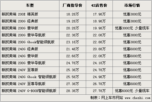 2010款凱美瑞于2010年3月1日在深圳正式上市,售價相較于09款有所調(diào)整,多款車型價格進行了官方下調(diào)。售價區(qū)間為18.28-28.38 萬元。根據(jù)網(wǎng)上車市價格監(jiān)測系統(tǒng)顯示,目前2010款凱美瑞上市不到一個月就已經(jīng)開始出現(xiàn)優(yōu)惠,最高降幅達6000元。具體車型售價見下表: