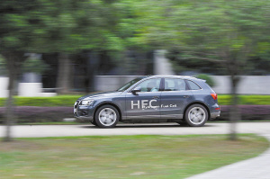 在科技日上,一款令人意想不到的氫燃料電池車——奧迪Q5 HFC(Hydrogen Fuel Cell)氫燃料電池車也出現(xiàn)在試乘車型隊伍中。我們試乘后的感受是,與內(nèi)燃機Q5相比,這款車的動力毫不遜色,聲音非常安靜,而且這款車排出的只有水而沒有任何廢氣。
